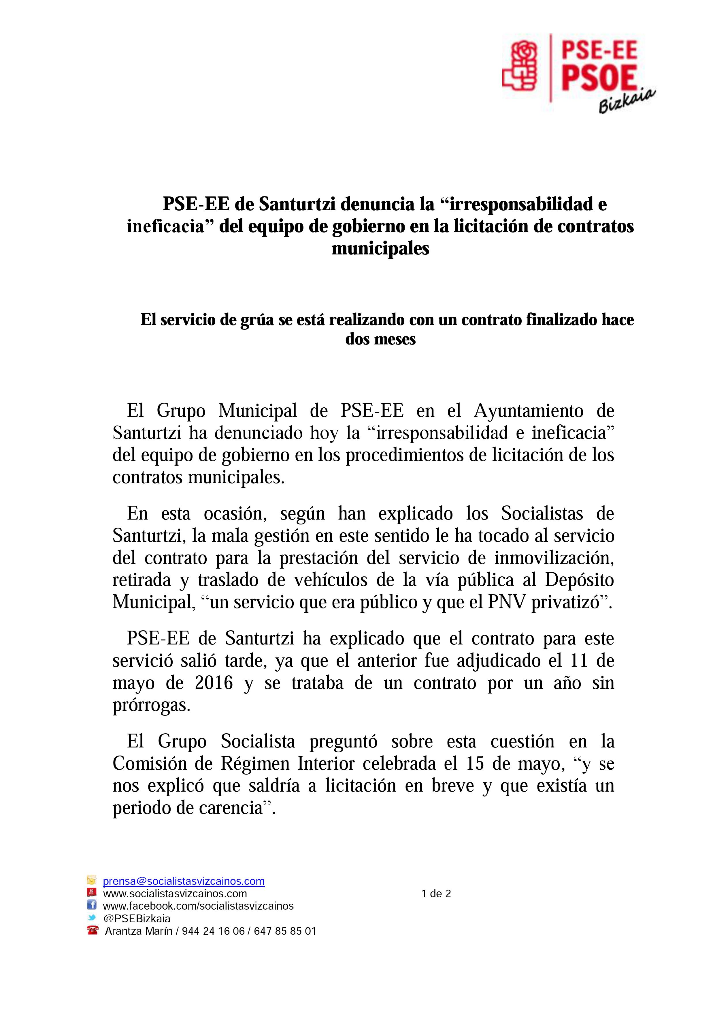 Publicada en PSE-EE de Santurtzi denuncia la “irresponsabilidad e ineficacia” del equipo de gobierno en la licitación de contratos municipales El servicio de grúa se está realizando con un contrato finalizado hace dos mesesTamaño completo2481 × 3508